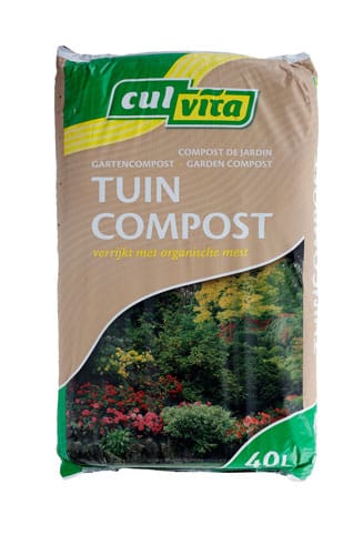 Groencompost is een donkerbruin tot zwart, kruimelig product dat bestaat uit plantaardige resten zoals grasmaaisel, bladeren en snoeihout . Groencompost bevat veel organische stof en verbetert de bodemstructuur doordat voeding en organisch materiaal wordt toegevoegd. Groencompost is 100% natuurlijk. Groencompost is prima om de structuur van de tuingrond te verbeteren en deze tegelijk te bemesten. Vooral zandgrond is gebaat met groencompost en turf. Zandgrond laat het water te snel door, waardoor planten het moeilijker hebben om aan hun voedingsstoffen en hun nodige vocht te komen. Groencompost verbetert de structuur en het leefklimaat voor de wortels van de plant.
